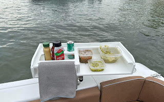 The family board is 11in by 24in with an adjustable base that can work with any rod holder angle. It can handle A Day out fishing or a day with the family by simply taking out the removable insert. When the insert is in place it has a dish towel rack, sunscreen holder, two drink holders, and a section for miscellaneous items along with an open section that can accommodate anything you can throw at it.
