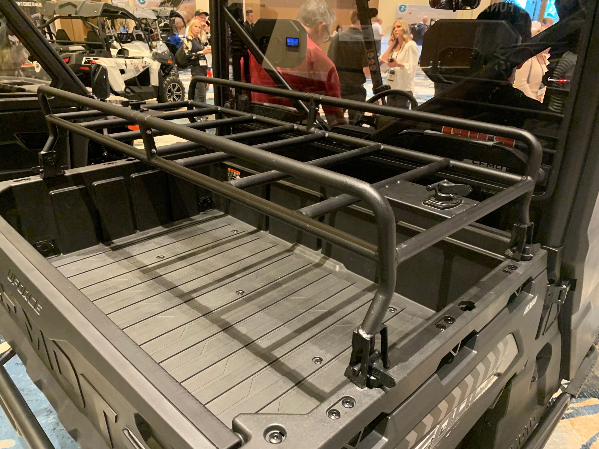REAR CARGO RACK Fits MY25 and later U10 Pro, U10 XL Pro • Strong welded steel frame • Mounts using CFConnect • Can mount cargo box P/N 5HYV-806100-1000 to top • Durable black powder-coated finish