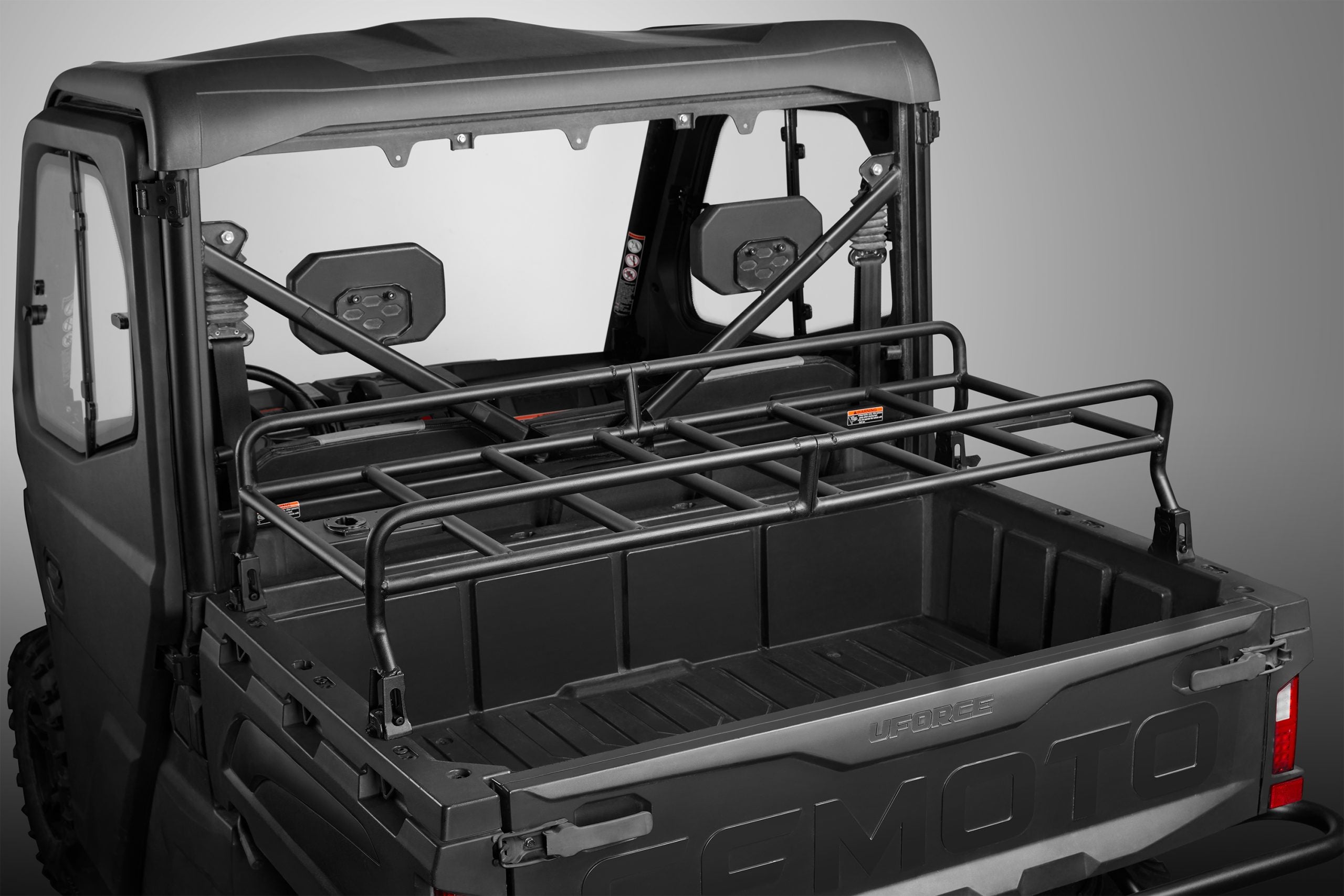 REAR CARGO RACK Fits MY25 and later UFORCE 800 XL, MY21 and later UFORCE 600 • Strong welded steel frame • Mounts using CFConnect • Can mount cargo box P/N 5ASV-806100-6000 to top • Durable black powder-coated finish