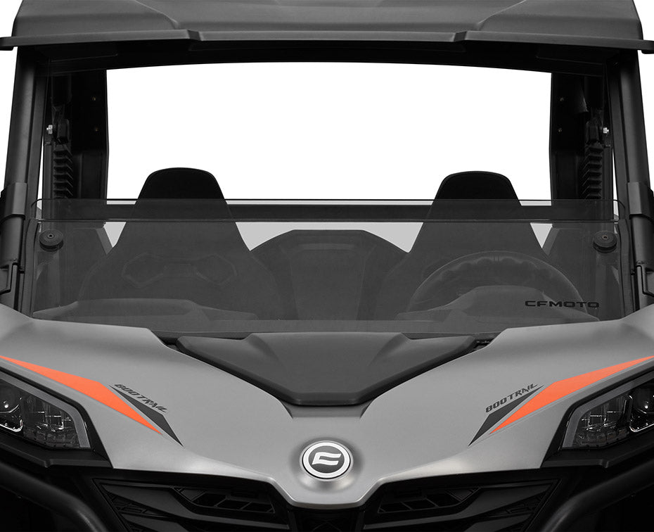 HALF FRONT WINDSHIELD, POLY Fits MY23-25 ZFORCE 800/950 Trail, ZFORCE 950 Sport, ZFORCE Sport 4 • Easy install with CFConnect system • Hard-coated, impact-resistant polycarbonate • UV protection to prevent yellowing